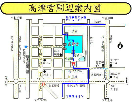 「高津の宮」の位置は、今も明らかではない。現在この「高津宮(高津神社)」は中央区高津1丁目1番にあるが、ここから東へ