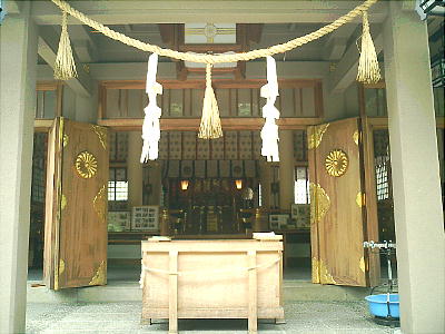 が、社殿左(西側)にある海鼠塀の御輿庫と、その左の石鳥居は戦火から免れた。社殿の右(東)に摂社「高倉稲荷神社」、「安