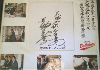 鉄バッファローズ」の優勝祈願に訪れた梨田監督たち近鉄首脳陣。