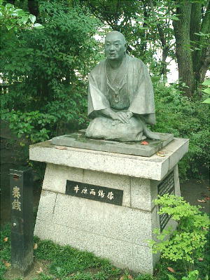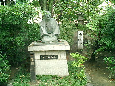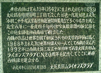 生国魂神社南坊址に、浮世草子の作者として有名な大阪を代表する作家井原西鶴の像がある。生国魂神社は江戸時代には大変な