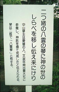 絃のしらべ神前の鈴の音に合して四時ともに繁盛なる」 とある。