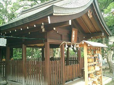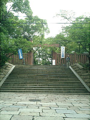 いた。ここから遠く六甲、淡路が眺望できて賑わったそうである。現在は繁華街(ホテル街)の中に社地を占めているが、緑深