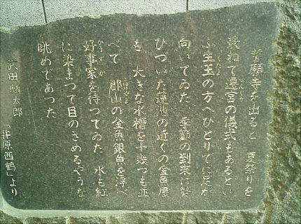 めた作家であった。何回となく西鶴愛好会の人たちの手で改修されたという墓は、俳諧師よろしく風流である。