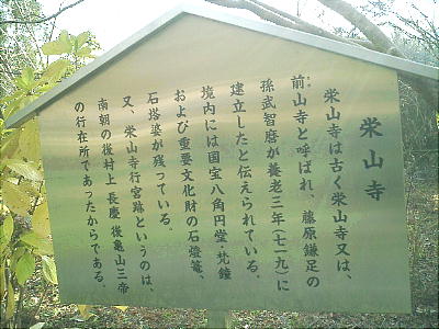 老3年(719)藤原武智麻呂公によるといわれている。古来は前山寺あるいは崎山寺と呼ばれ、いつしか「榮」の字が当てら