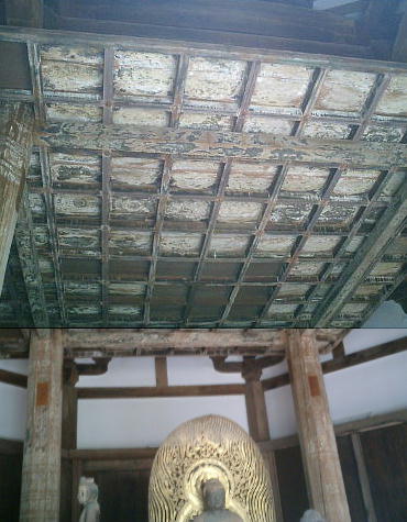 薬師如来像の天井壁画が、博物館に復元してある。本物はもう剥げてほとんど原型を保っていない。