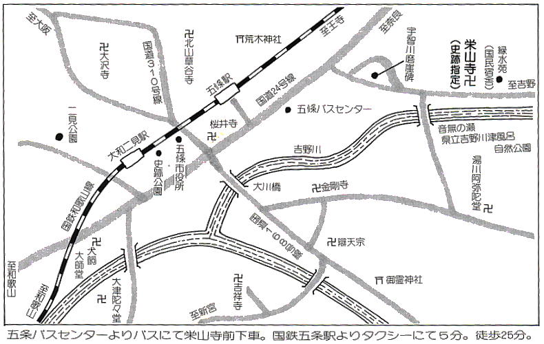 音無川(吉野川)を眼下に望む榮山寺は、藤原南家の菩提寺として鎌倉時代になるまで栄華をほしいままにした。創建は養