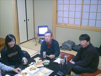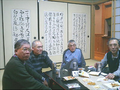 湯は少し白濁で、ぬるぬるしている。ゆったりした休憩所は無かったので、一人120円供出で座敷(1000円/1h)を借り、 そこでビールとつまみのささやかな反省会となった。今日は少し歩きが長かったかなと思ったが温泉につかってその疲れも とれた。最後に温泉というのが例会の慣例になりそうだ。