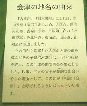 会ったことから「アイヅ」という地名がおこったという。この話は神話であり、当然そのまま史実ととらえる事はで