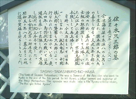 殺した張本人ではないかとされている佐々木只三郎の墓などがある。