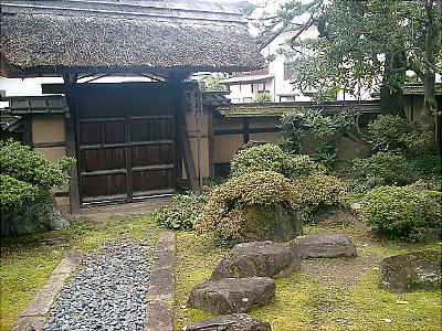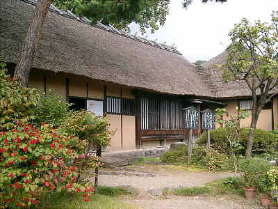 茅葺きの屋根におおわれた書院づくりの建物は、現在国の重要文化財に指定され、御入御門、御座の間、御次の間など