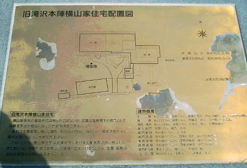 の滝沢口(滝沢峠の登り口)にある。横山家は16代を数える旧家で、主屋の部分は郷頭の住居として古い農民住居の形