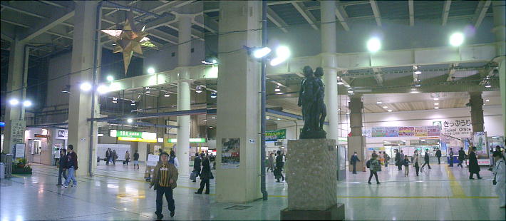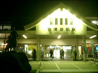 夜の「会津若松駅」を写して今夜の宿、東山温泉の「瀧の湯」へ向かう。