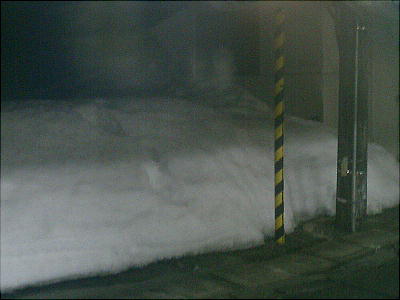 驚いたことに、猪苗代湖のあたりではまだ結構な積雪だった。上右はホーム上の雪。