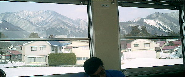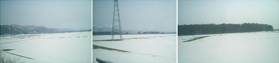 また、猪苗代湖付近に来ると雪の中であった。昨夜は夜であまり見えなかったが、雪原はどこまでも広がっていた。