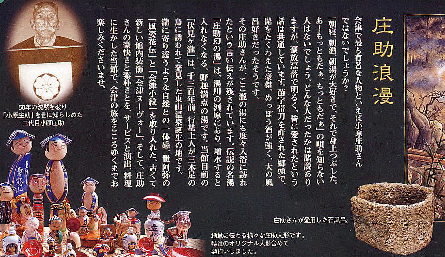 庄助の湯 瀧の湯 〒965-0814 福島県会津若松市東山町湯本字滝ノ湯108 Tel 0242(29)1000(代)