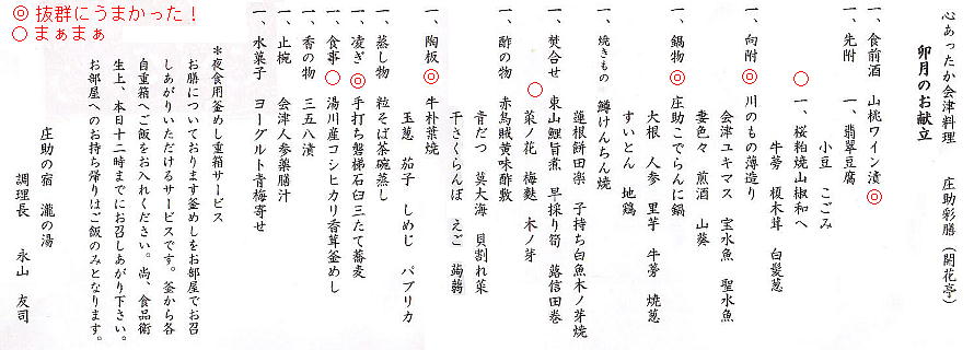 ホテルの食事はどれもみんなおいしかった。九州や関西では見たことがない、白い磐梯石臼曳きの蕎麦はうまか