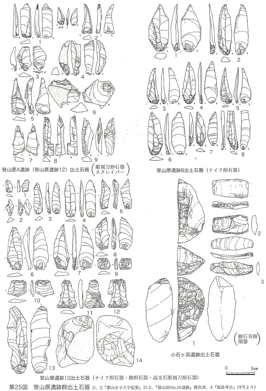 mほどの範囲から約2千点の資料が発見されている。1971年、1982年の発掘調査でナイフ形石器、エンド・スクレー