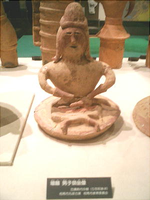 にユニークな土偶である。このような形をした土偶は他にも何点か知られている事から、何か特別な姿勢だったのかも