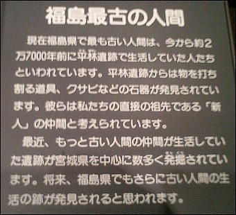 現在、福島県内で一番古い遺跡は桑折町(こおりまち)平林遺跡で、今から約2万7千年前のものである。遺跡を残し