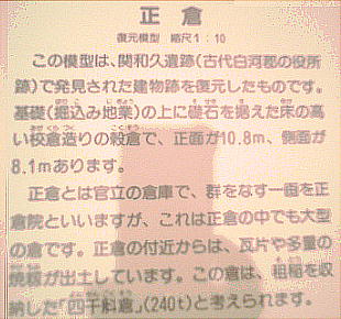 古代白河郡役所と考えられている泉崎村関和久遺跡から検出された正倉跡をもとに復元したもの。しばしば火災にあった