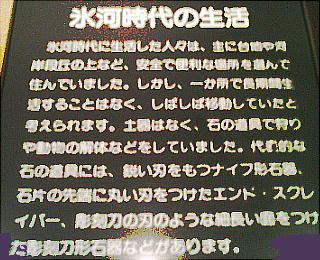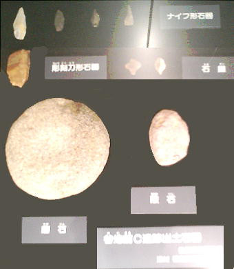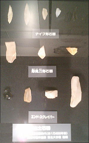 た人々は、我々現日本人の直接の先祖である「新人」の初期の人たちであろうと考えられる。石器は流紋岩製で、もの