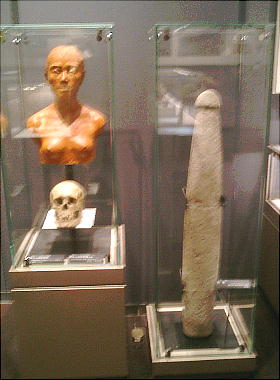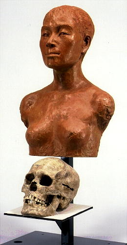 三貫地貝塚出土の人骨をもとに肉付けをしたもの。20歳代の女性で、縄文人としては比較的華奢なタイプに属する。