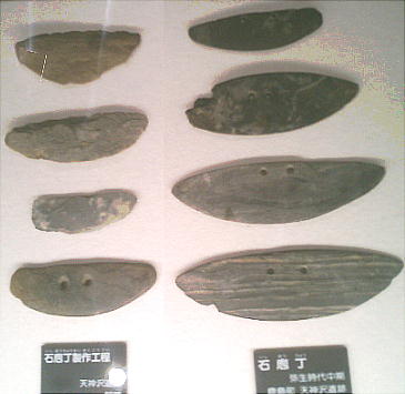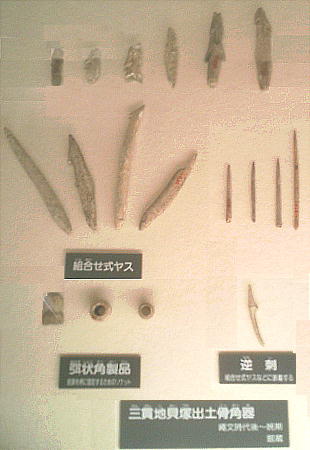 と推定された。出土品は、石ぞく、打製石斧、磨製石斧、石錘など。また特色があるのは骨角器で、銛が最も多く、骨