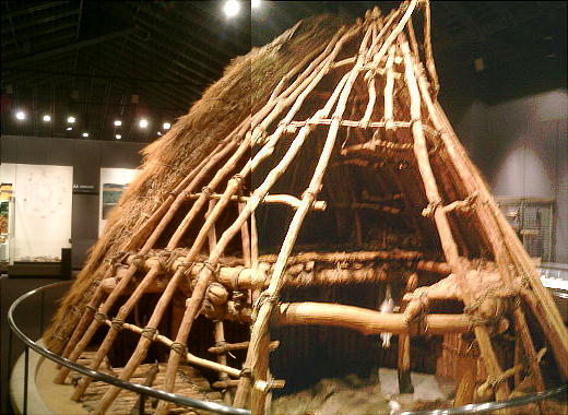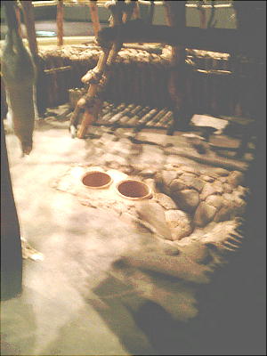 複数持った大形の炉が設置されている。上屋構造は推定による復元だが、住居内の広い空間は、中二階や棚などを設