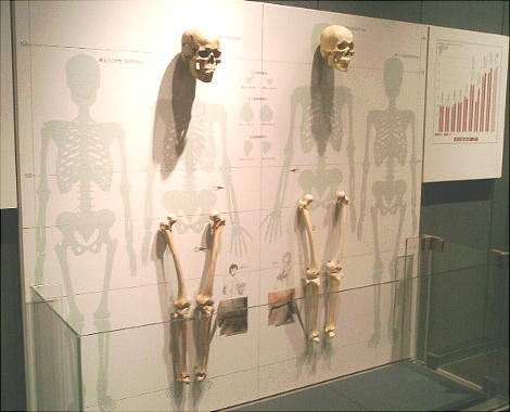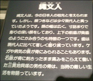 しかし、眉の部分の隆起や、顎(あご)の骨の発達が著しい点などに、縄文人の特徴を見いだす事ができる。歯は上下