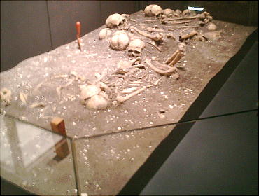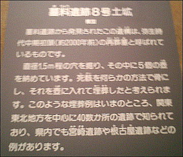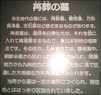 を否定する貴重な資料となった。人骨は、屈葬、伸展葬、幼児のおう棺葬など多彩で、その中には頭部を寄せ集めて円