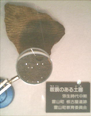 器片の中には、西日本の弥生前期の畿内第T様式に並行する「木葉文士器」の発見があり、東日本で一躍知られる遺跡と