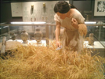 貧富の差や階級が出始め、石庖丁を使って稲穂を摘み、貫頭衣(かんとうい)を着るという、全国の弥生時代遺跡と