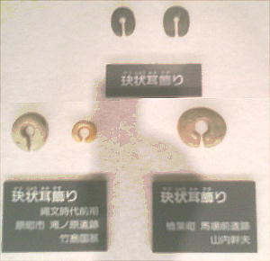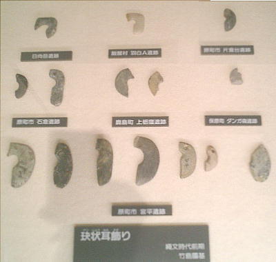 原町市滝ノ原遺跡から出土した縄文時代前期(約5500年前)のイアリングである。古代中国の玉製品(ぎょくせい