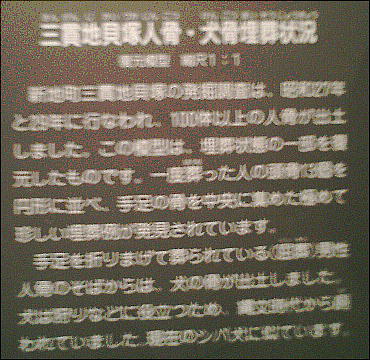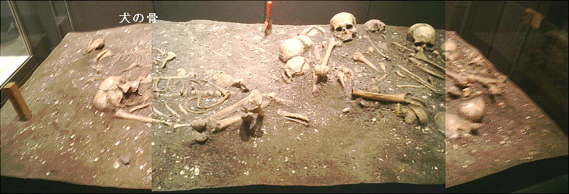 本では最も多い人骨の出土例である。手足を折り曲げて埋葬された(屈葬)人骨の側には、生前に飼っていたと思われ