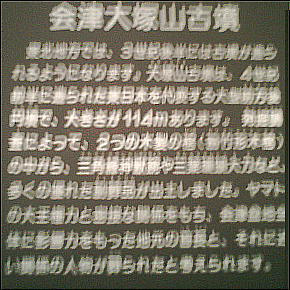 果をあげた。会津若松駅から東へ1kmほどのところにあり、築造は4世紀後半と考えられ、全長114mの前方後円墳