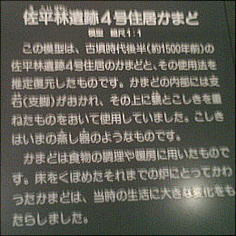 4700年前)の住居跡遺跡で。これも福島県立博物館に復元してある。住居の中央には「複式炉」(ふくしきろ)と呼