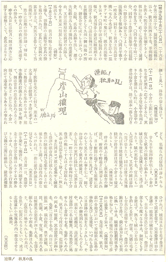 ・「秋月の乱」勃発。(10月。乃木希典少佐率いる小倉鎮台に鎮圧され、7日で収束。200〜300人。)