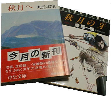 上左は、昭和61年4月発行の丸元淑生著・中公文庫「秋月へ」、秋月の乱に参加した曾祖父を持つ少年の、心の成長過程を描いた