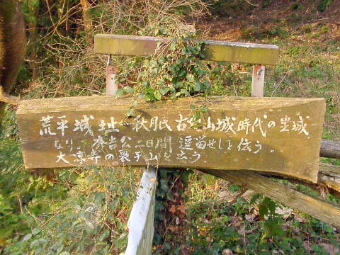 写真は杉ノ馬場(真ん中の桜並木)を秋月の北西方向、荒平城跡あたりから見たところ。