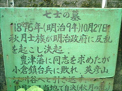 驚いた事に、私は最近になって知ったのだが、秋月藩士が死亡した豊津藩では、現在もこの時の死者を痛んで法要が営まれている