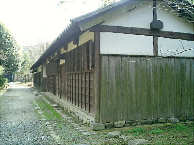この門の裏手に側室が住んだと言われる屋敷があったそうで、門は福岡県の文化財に指定されている。長屋門を通り過ぎて左手に急
