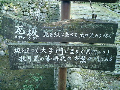 城の通用門・勝手門であった長屋門は当時のままの姿で残っている。この近辺が秋月で一番城らしさを残している所であり、黒門の