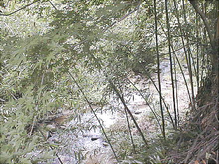 秋月街道を城址へ折れるとすぐ野鳥川にかかる橋である。ここから城址までが杉の馬場である。橋を渡ると左側に、人の背丈ほどの