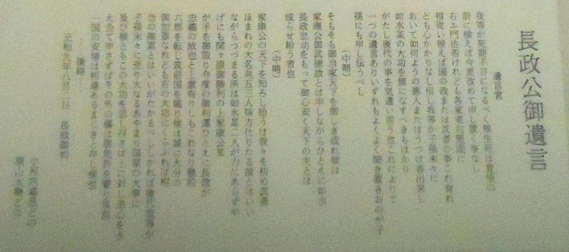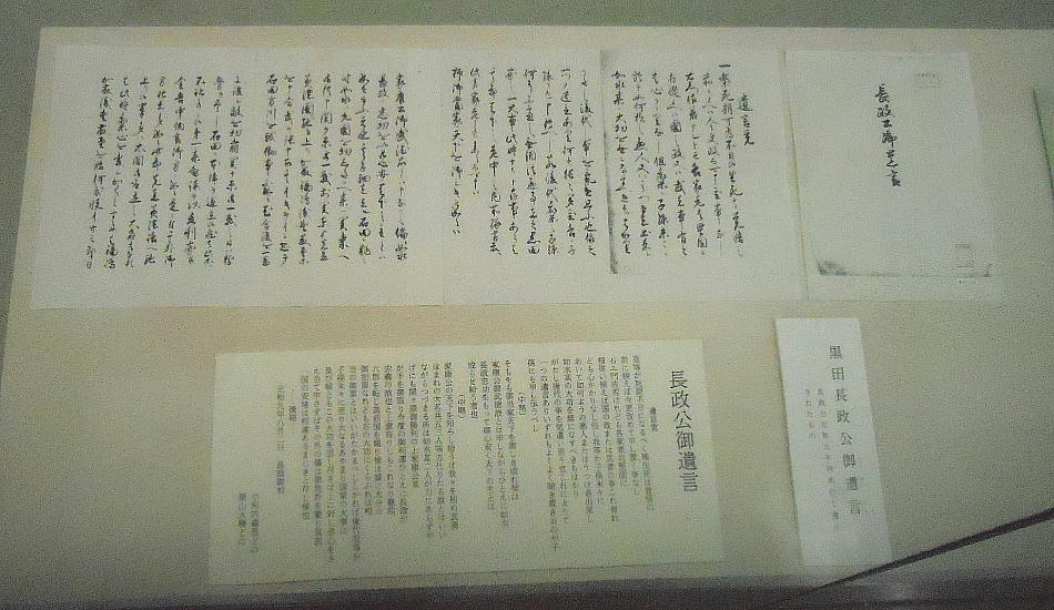 と記録にあるが、これは、最終的には正式な遺言状(上)が福岡藩大老栗山大膳らに長政から託されているので、恐らく後世の脚色、