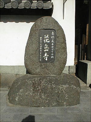息継ぎの井戸から、側溝に水が流れる町中の旧道を行くと、ゆっくり歩いても5,6分で花岳寺に着く。