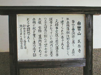 正保2年(1645)の浅野長直が父華嶽院と母台雲院の菩提寺として建立し、その法名から台雲山華嶽寺と称した。曹洞宗永平寺末寺。
