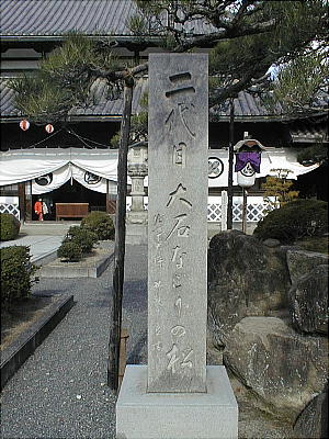 大石内蔵助良雄(よしたか)とその一家は赤穂城開城前から尾崎に借り住まいし、内蔵助は開城後の残務処理を6月まで続けた。6月