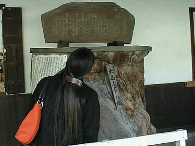 下は、松の由来を読む宏美ちゃん。