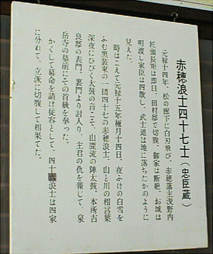 った。切腹したのは実は46士だったのである。ここの説明も最初47士としていたのを、上から46に変更してある。