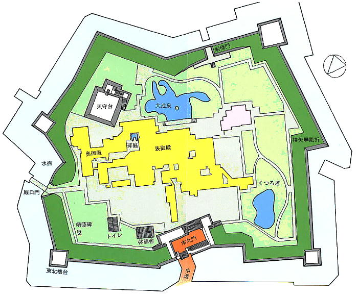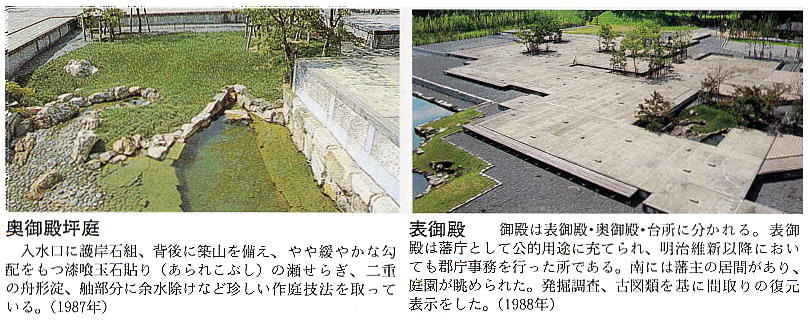 床に区分けされている。庭園・天守台も復元されており、縁側に座って庭園を眺めるのも落ち着くし、天守台からも眺